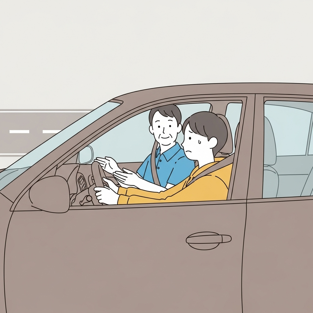 자차 연수는 초보자에게 심리적 부담이 커질 수 있으나, 강사의 즉각적인 제동·코칭으로 안정적으로 진행된다.