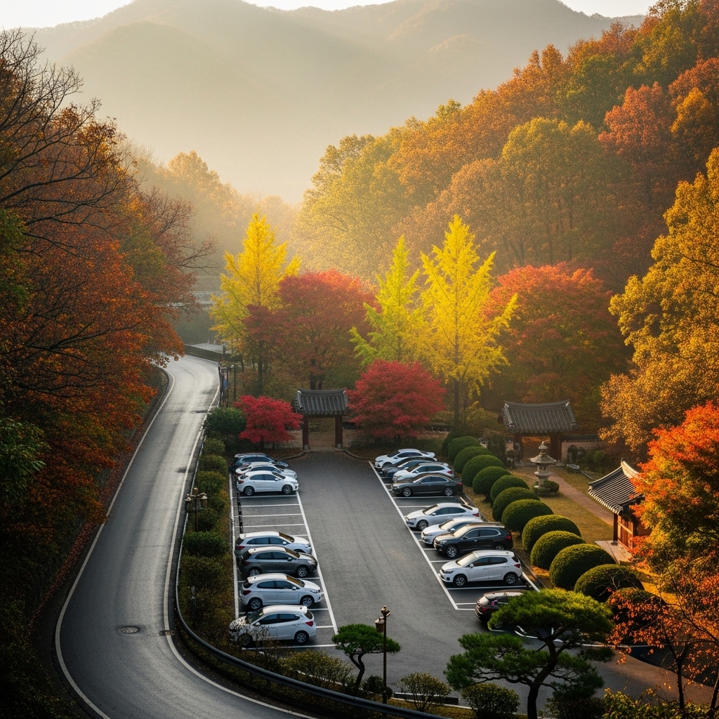 단풍이 절정일 땐 입장보다 주차 전쟁이 먼저 시작됩니다.